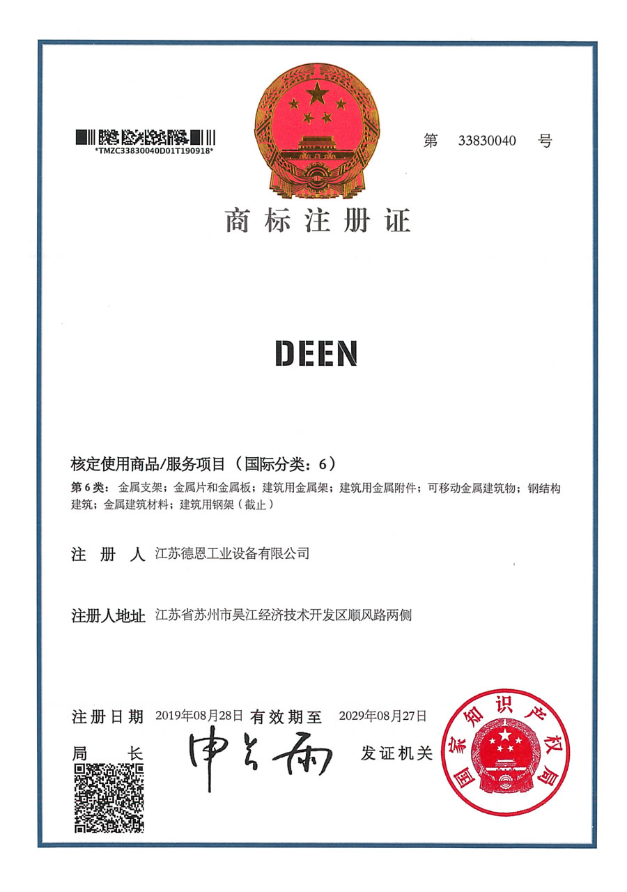 江蘇德恩商標證書-6類